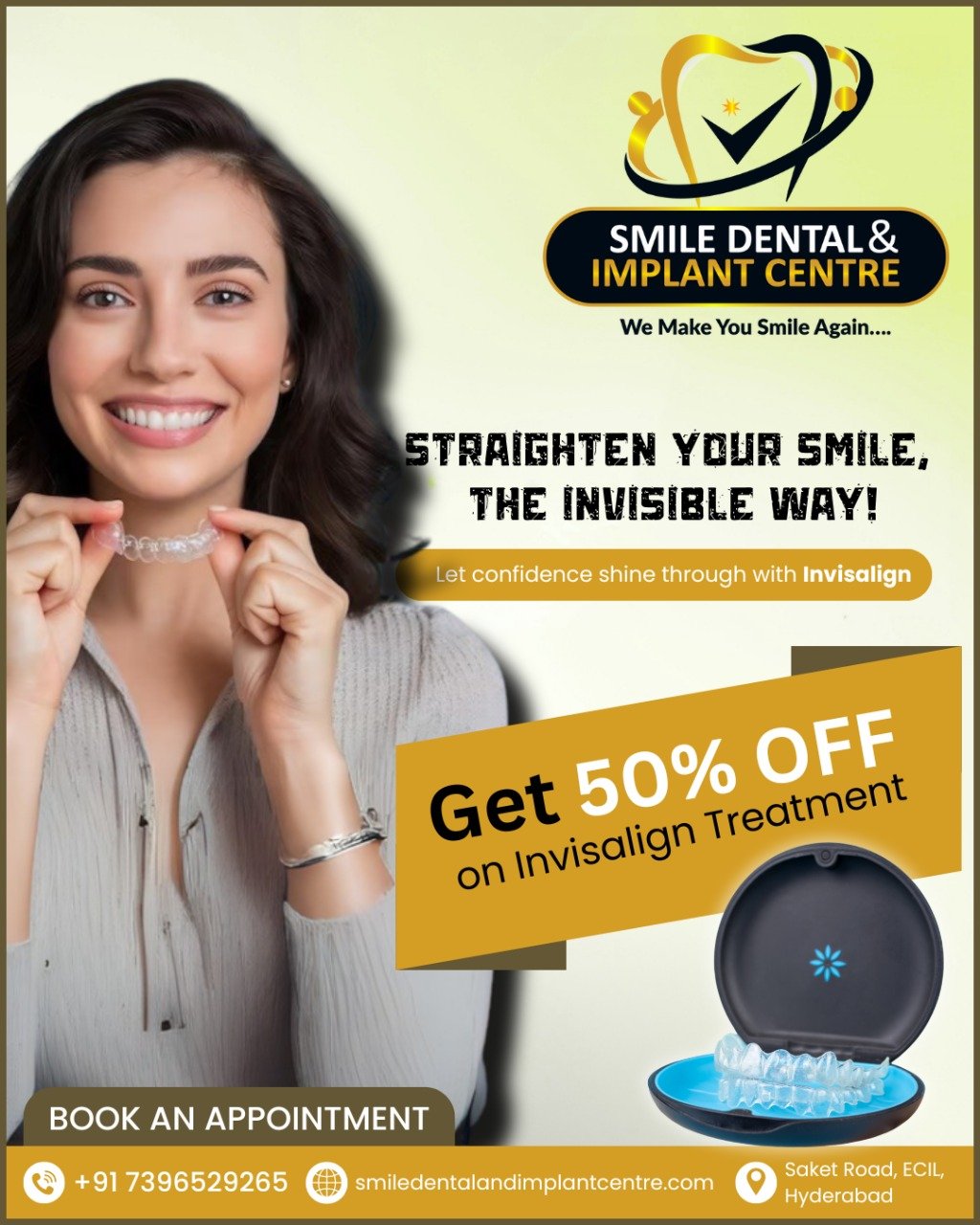 Check Invisalign Offer: https://smiledentalandimplantcentre.com/get-up-to-50-off-on-invisalign-teeth-aligners-at-smile-dental-and-implant-centre-in-as-rao-nagar-secunderabad/