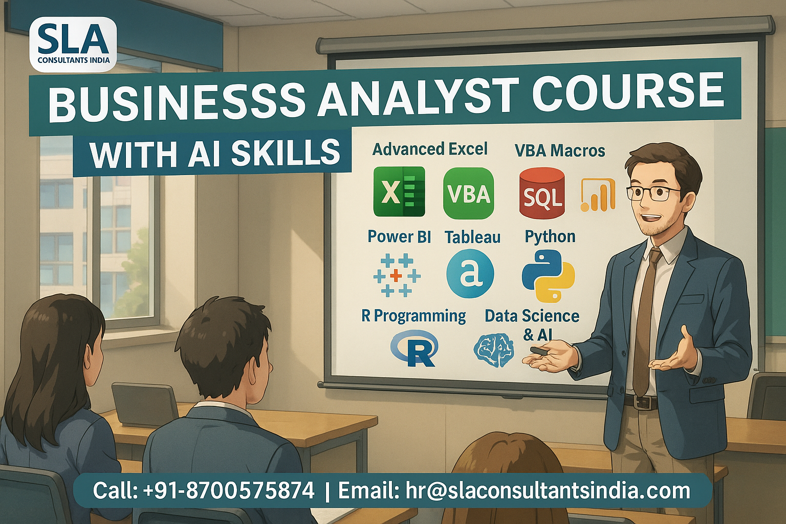 The Business Analyst Course in Delhi with AI & ChatGPT [English] by SLA Consultants India is a future-focused program designed to help professionals and graduates tech-enable their careers with advanced AI skills in 2026. This course builds a strong foundation in core Business Analyst competencies such as requirement analysis, stakeholder management, business process modeling, use-case development, and solution evaluation. Delivered in English and aligned with global business standards, the program prepares learners to work confidently in corporate and international environments where technology-driven decision-making is essential.