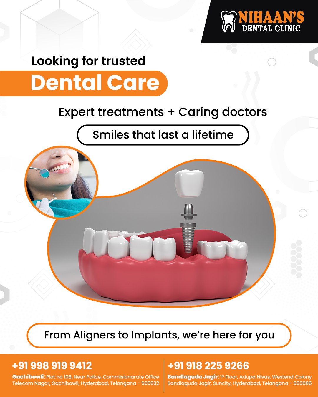 Looking for a trusted Dental Clinic in Gachibowli? Nihaan’s Dental Clinic provides professional dental care with modern technology and skilled dentists. From preventive care to smile makeovers, we ensure complete oral health. Book your visit today at +91 9989199412.