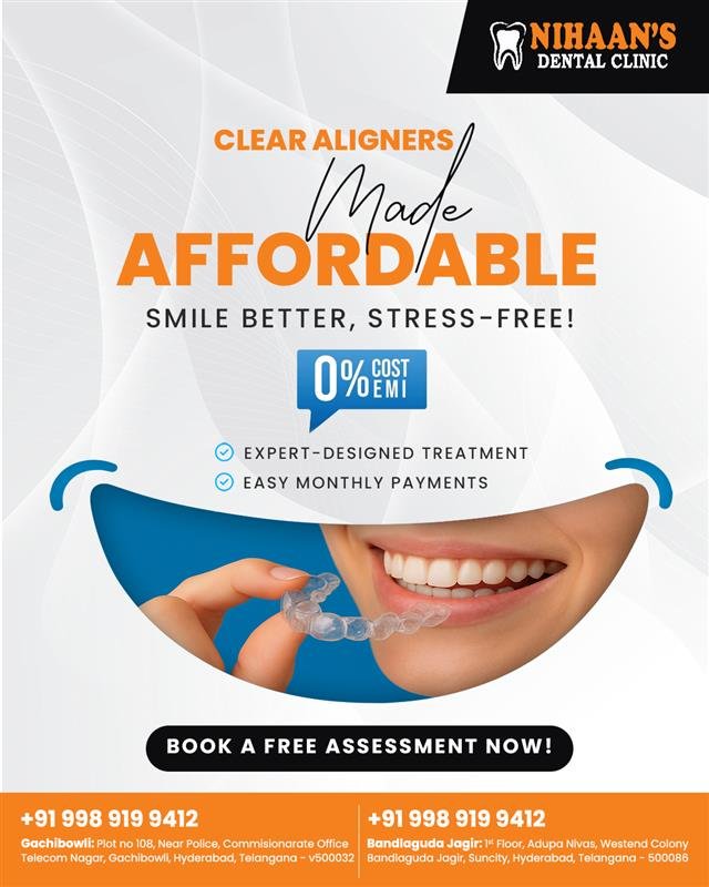 Searching for a Dental Clinic Near Gachibowli? Nihaan’s Dental Clinic offers personalized care, modern treatments, and expert dentists dedicated to your oral health. We make your smile brighter and healthier. Call +91 9989199412 for appointments today!