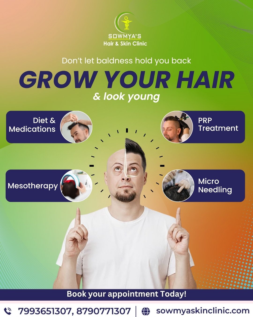Struggling with hair loss, thinning, or bald patches? It’s time to bring back your confidence with expert care from Sowmya’s Skin Laser Clinic & Hair Transplantation Centre — the trusted hair clinic in Hyderabad loved by hundreds of happy clients!