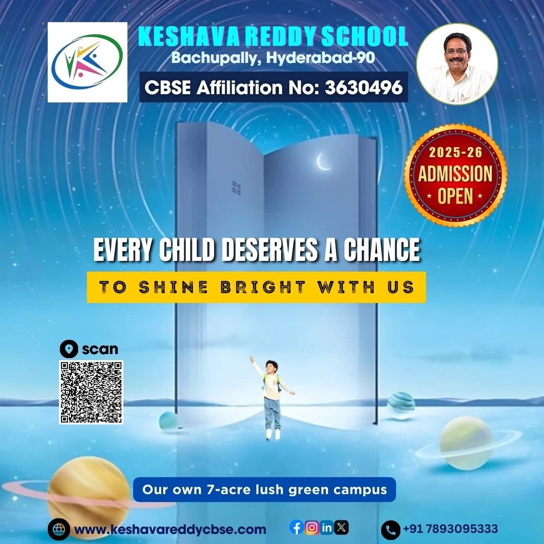 Every child carries a dream waiting to bloom. 🌱 At Keshava Reddy School, we believe success is not just achieved it’s nurtured. With the right blend of guidance, encouragement, and opportunity, young minds transform their dreams into beautiful realities.