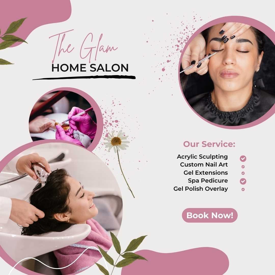 The comfortable and hygienic environment at The Glam Home Salon provides you with premium care in a relaxing setting. Whether it's for daily grooming or a perfect nail look for a special occasion, every service is designed to make you feel relaxed, refreshed, and confident.