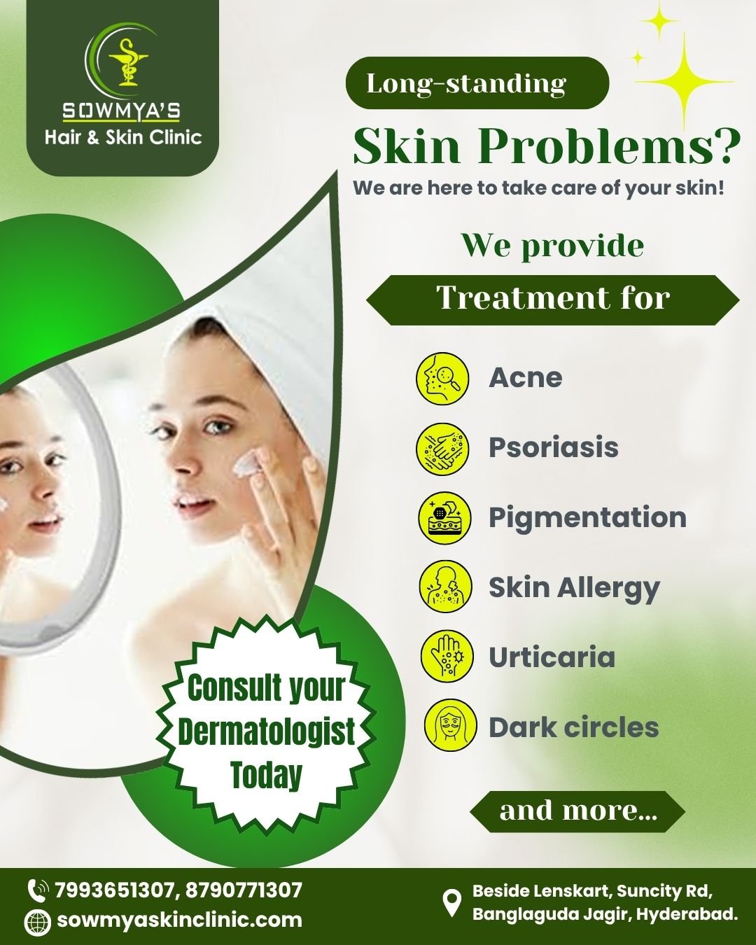 Many skin problems start small—but when ignored, they can quickly turn into long-term concerns. That’s why visiting the best skin doctor in Hyderabad at the right time can truly save your skin. At Sowmya’s Skin Laser Clinic & Hair Transplantation Centre, we believe early care leads to faster healing, better results, and healthier skin for life.